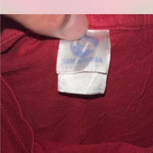 Red t-shirt with a bold graphic design. Perfect for casual wear.
