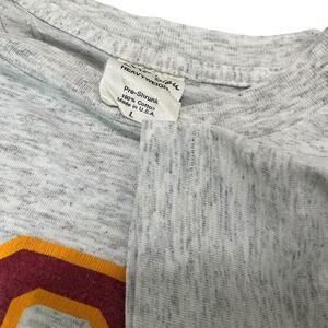 heather grey collegiate tee featuring USC’s signature maroon and gold pharmacy department graphic, perfect for Trojan alumni, med school collectors, or retro campus looks. Single stitch.