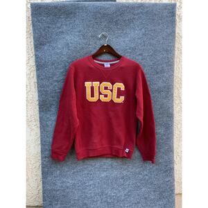 USC Sweatshirt Mens Small Red Russell Athletic Crewneck Pullover College Logo