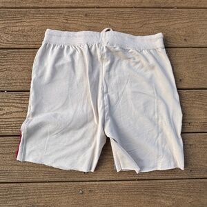 Made from new joggers and vintage t-shirts, raw edge bottom