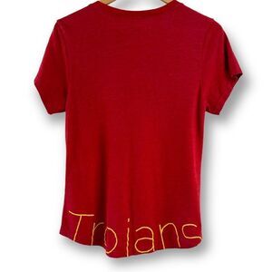 USC Trojans womens short sleeve t-shirt size M. Crisscross in front, Trojans printed on back hemline. Excellent preowned condition. See pics for care tags and approximate measurements.