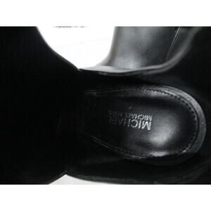 USED Michael Kors Women Lawson Leather Peep Toe Ankle Wrap Booties, black-Sz 8.5