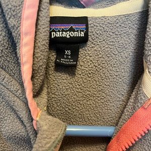 Very cute gray and pink lightweight Patagonia fleece with hood.