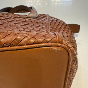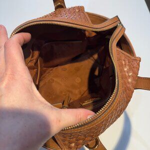 USED - Tory Burch Thea Woven Mini Slouchy Satchel Classic Tan