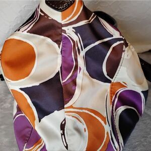 Approximately 15"W x 10"T x 4"D. Measurements vary a little depending on how you style the purse. There are clips and rings on the sides that can be clipped together or you can clip the removable strap. Two handles. Minor stains as shown. No tears or rips. Smoke free/Dog friendly home