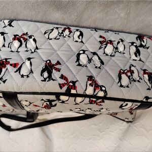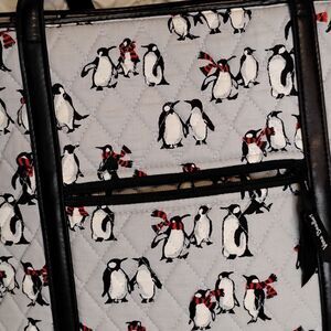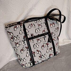 Approximately 15"W x 11"T x 4"D. The pattern I believe is playful penguins. Used. Minor wear. No rips, tears or stains. Smoke free/Dog friendly home.