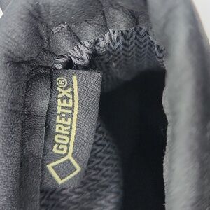 Experience the rugged durability and timeless style of these GORE-TEX combat and moto boots. Crafted in solid black with a mid-calf height, they feature a traditional lace-up design and a thick, sturdy sole for ultimate support. Perfect for tactical adventures or everyday wear, these boots offer a matte finish and robust construction. Vibram Soles