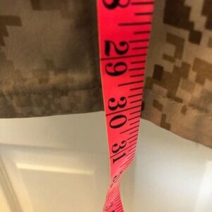 USMC Marine Corp Military Hunting Camo Shirt Jacket Button Down Medium Long LS. American Apparel Inc. Shirt is pre-owned but still stiff so barely worn. Please see photos for visible condition. USMC embroidered emblem on front - see photo. Reinforced elbows. 2 hook loop pockets front chest. 2 bottom pockets - one on each arm. Made expressively for the Department of Navy US Marine Corp. 2 small pink spots on right sleeve that may come out - see photo. Approximately 30 inches long, 26 inches arm length and 25 inches pit to pit.