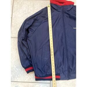This USMC Marines jacket is a versatile addition to your wardrobe. It's reversible, featuring a red fleece side and a blue side, offering two distinct looks. Although the size tag is missing, it appears to be an XL. Perfect for military enthusiasts or anyone looking for a warm and stylish jacket. Grab this unique piece today!