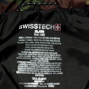 Brand New Mens sz. XL Full zip up Vest Jacket Coat. The front has the sewn on embroidered USMC I'm a Lover Not a Fighter logo on it. Made of polyester material. Made by Swiss Tech. It measures from top of collar to bottom of coat is 32 inches and from armpit to armpit is 25 inches.