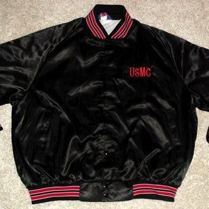 USMC Marines Vintage Mens Nylon Style Button Jacket Coat sz. XL New Front Back