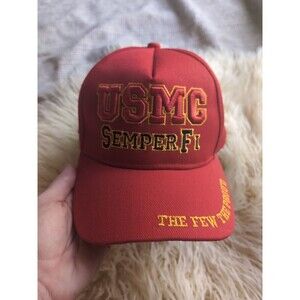 USMC Semper Fi Red Cap Sports Headwear Embroidered Adjustable W/ Eagle On Back