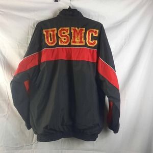USMC TheFewTheProud Black Red Mesh lined embroidered zip front pocket Jacket Lg
