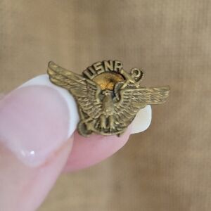 Gold pin featuring an eagle and anchor design with USNR inscription.