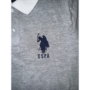 USPA Polo Assn Grey Embroidered Patch Polo Shirt Men’s Large 22x26 Preppy Casual
