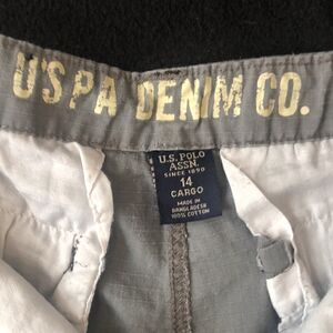 USPA denim co. Cargo shorts. Grey. Size 14 boys. Small barely noticeable mark on top left hip. See picture.
