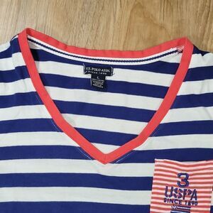 🔺️US Polo Assn Blue & White Stripe Vneck Short Sleeve Top Large