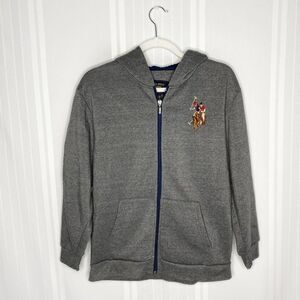 U.S. Polo Assn Long Sleeve Embroidered Hoodie Jacket Size 10/12 Gray Hooded