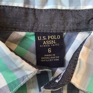 U.S. Polo Assn. Blue Green and White Plaid Button Down Dress Shirt.