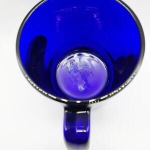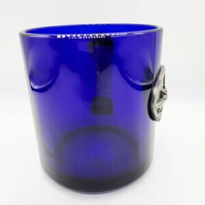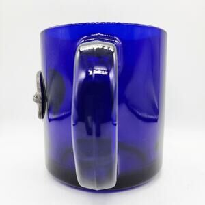 U.S.S Ronald Reagan Cobalt Blue Glass Souvenir Pewter Aircraft Carrier Mug