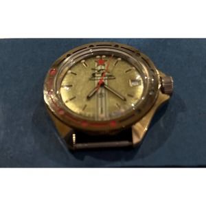 USSR GOLD SOVIET VOSTOK KOMANDIRSKIE TANK RED STAR MILITARY WATCH Great Cond