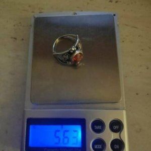 VINTAGE RARE USSR SOVIET RUSSIAN SILVER 875 LADIES RING WITH ORANGE SPESSARTINE CORUNDUM STONE