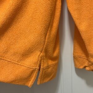 Great condition, kind of a cross between a sweater and a sweatshirt. Sort of a terrycloth material. Pit to pit is 25.5 inches, and length is 30 inches.