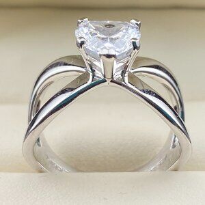 Design: Heart shaped stone indicative of Love, Romance, Eternity and Affection. A forever type ring. Double swirl band. Captivating.