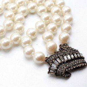 UTC China Faux Pearl Triple Strands Rhinestone Fancy Clasp Contemporary Bracelet