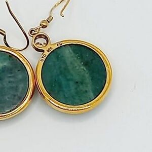 UTC Gold over Sterling 925 Silver Accented Green Aventurine Moon Face Earrings