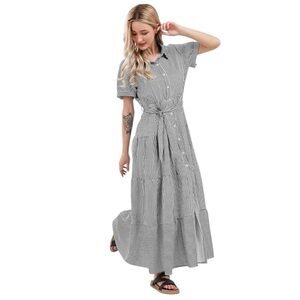 UTCOCO NWT Black Striped Maxi Dress with Belt Size Medium—ordered wrong size