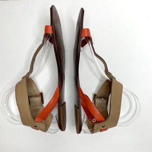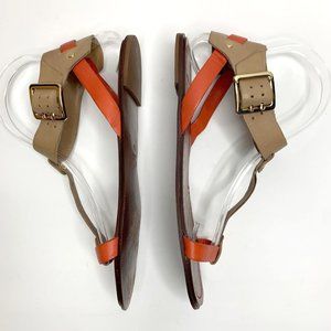 UTERQÜE Orange Tan T-Strap Gladiator Buckle Sandal Sz 38 / 7.5