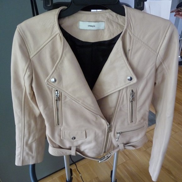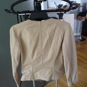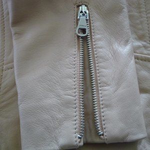 UTERQUE SPAIN, LAMBSKIN /ROSE PETALS-BEIGE-CREAM/ LEATHER BIKER BELT JACKET 4 FRONT POCKETS/3 zip, 1 button/ SIZE SMALL NEW NO TAGS