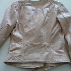 UTERQUE LAMBSKIN ROSEPETALS/BEIGE LEATHER BIKER JACKET SIZE SMALL NEW NO TAGS