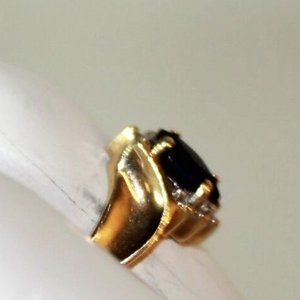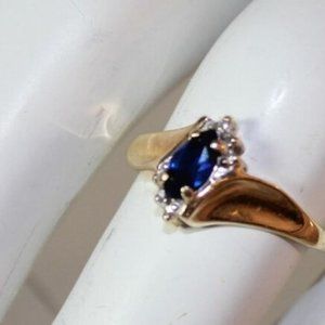 Beautiful Solid 10K Yellow Gold Blue Marquise Sapphire Diamond Ring Size 6.75 (1.6 Grams)