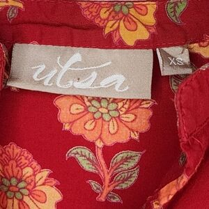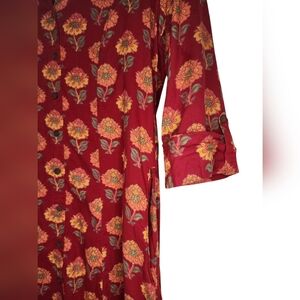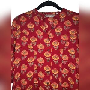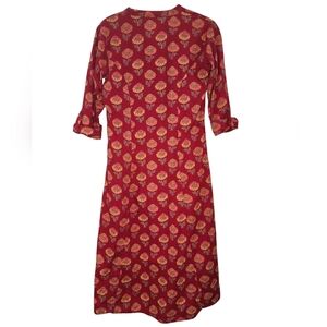 UTSA tunic dress, button down, pockets, red/orange, boho, XS