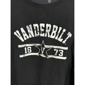 collegiate apparel, long sleeve top, athletic wear, black sweatshirt, gray elbow patch, retro graphic, adult apparel, vintage style, crewneck sweatshirt, casual wear, U-Trau, size XL, Vanderbilt sweatshirt