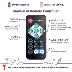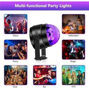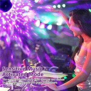 🧿【Remote Controlled DJ LIGHTS】Comes with a remote controller, you can use it to turn on/off the lights, change sound activated/lighting modes and control the rotating/flash speed. All functions on the remote, very easy to use.