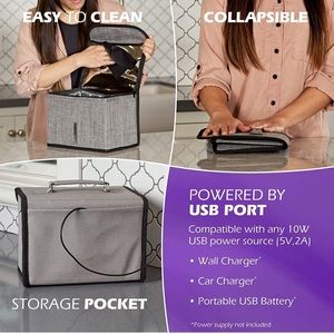 With a compact design (10.25” x 7” x 8”) and carry handle, this uv sterilizer bag is made for portable on-the-go use and is conveniently powered by a USB car adapter. *USB cable included