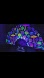 Features vibrant and colorful mushrooms on a black background, printed on UV reactive fabric.