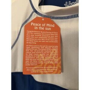 The UV SKINZ UPF 50+ LS Stretch Beach Shirt in white and blue is a stylish and functional activewear top designed for men in size 3XL. This pullover shirt features a mock neck with raglan sleeves, making it perfect for travel, outdoor activities, or casual wear. Made with a lightweight and breathable jersey fabric, this shirt provides UV protection and is easy to care for with machine washable instructions. The athletic fit and big and tall sizing ensure comfort and style for any season.