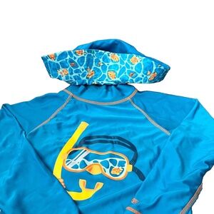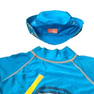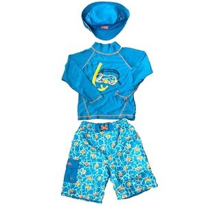 UV Skinz Boys Matching Snorkle Rash Guard Top, Fish Swim Trunks & Hat Size 7