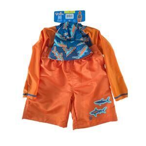Brand new with tags UV Skinz boys swim suit set size 5. Includes swim shorts, rash guard and hat. UPF 50