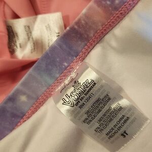 Size 3t 3 piece swimsuit set with long sleeve rashguard top, skirted bottom, and bucket hat in good used condition as pictured. Brand is UV Skinz which specializes in swimwear that is UPF 50+ :)