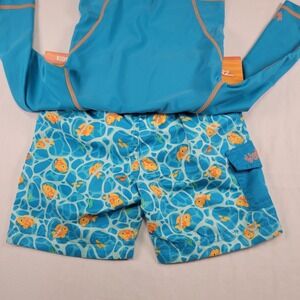 UVSkinz Kids 3 Pc Swimwear Set RashGuard Shorts Reversible Hat Size 2T Fish Vaca