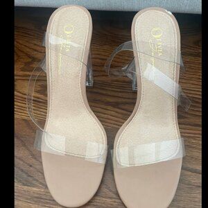 UWB Olivia Ferguson Clear/Nude Strap Heels Size 6.5