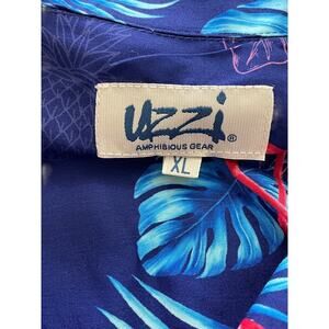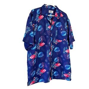 UZZI Amphibious Gear Men’s Size XL Deep Blue Pink Flamingo Button Down Short Sleeve Vacation Shirt. Machine Wash.