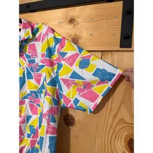 UZZI Amphibious Gear Tropical Neon Color Block Short Sleeve XL Button Down
