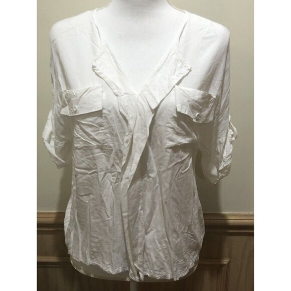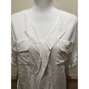 Ua Losangeles ~ Short Sleeve Roll Tab Blouse~ Size Medium ~ Off White
