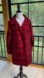 Red background with raised black velvet or flocked geometric designs. Lined with a satiny black logo fabric. Lightweight & packable! Has a stylish full-length center black pleat. Amazing brand sold in boutique stores. Front button closure. Likely water resistant, as most of their jackets are. Sized as a Medium. Currently missing 2 big black buttons, although it does include all buttons on the cuffs & a row of small buttons that can be used in place of the big buttons (examples of all 3 types are shown).